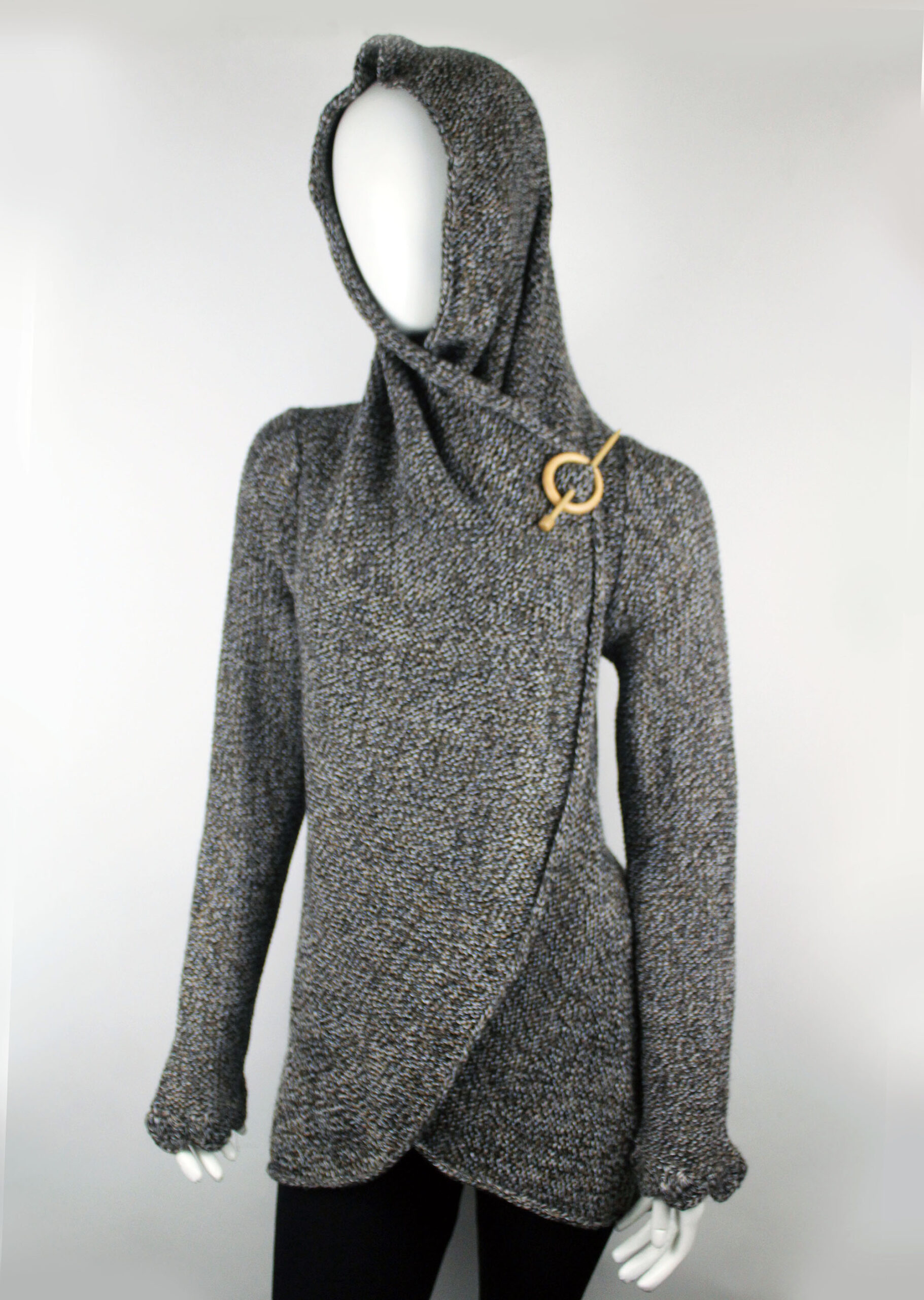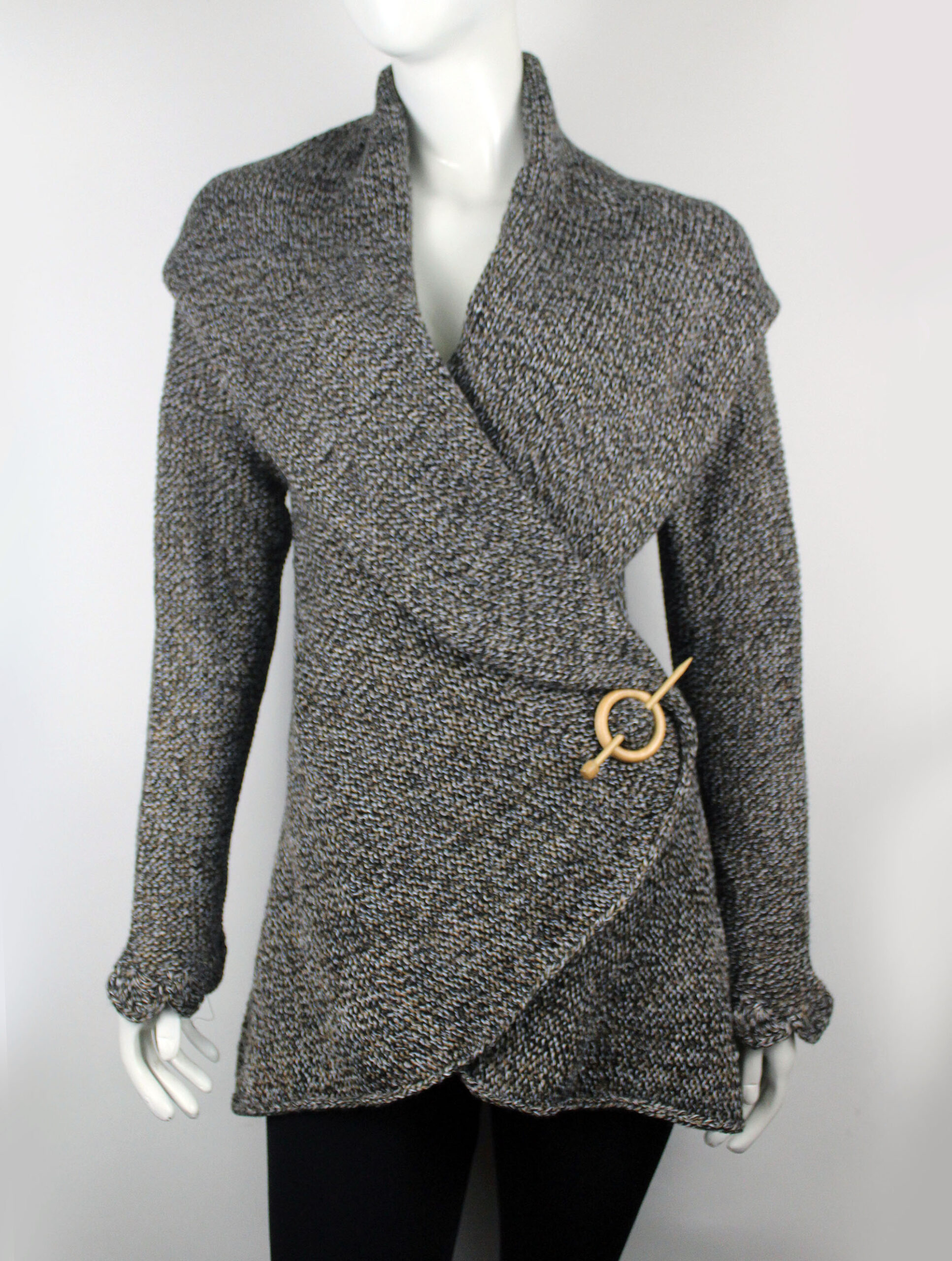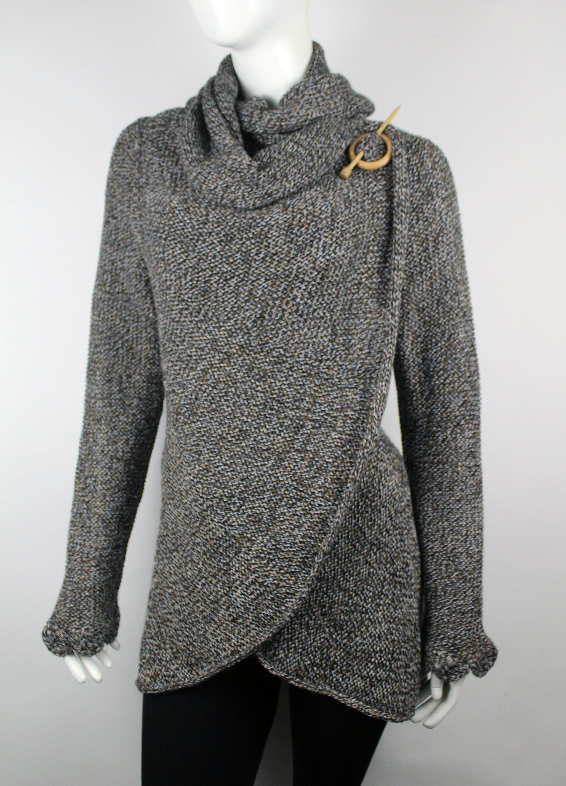 For your purchase it includes the wooden brooch that you see in the photo to make your cardigan look better.